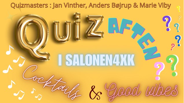 Torsdag den 19. september 2024 kl. 19:00 er der quizaften i Salonen4xk. Med spørgsmål i forskellige genrer og sværhedsgrader er der noget for alle. Der er plads til hold af fire personer, og arrangørerne opfordrer til at fylde bordene op, uanset om man kommer alene eller i en gruppe. Det bliver en sjov og rimelig aften, hvor alle kan være med og teste deres viden.