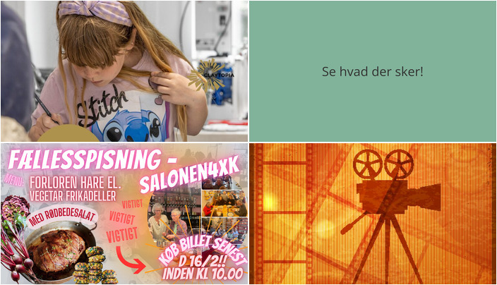 Onsdag aften inviterer Salonen4xk til årets første fællesspisning. Menuen byder på forloren harer eller vegetarfrikadeller med rødbedesalat. Dette er en god mulighed for at møde både kendte og nye ansigter i et hyggeligt fællesskab. Husk at tage din egen tallerken og bestik med. Der kan købes drikkevarer på stedet, og sidste frist for billetkøb er 16. februar.